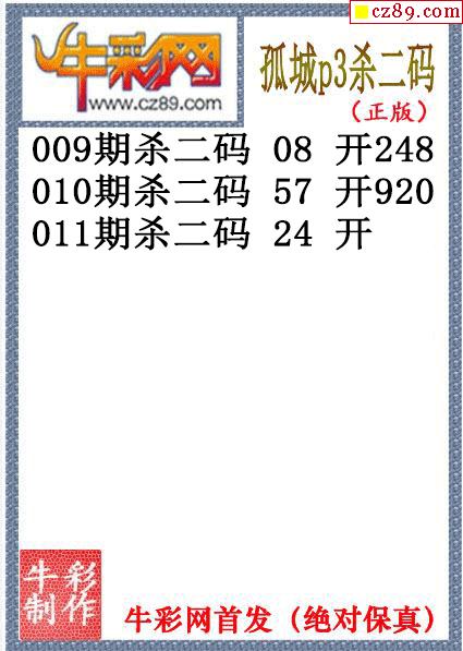 孤城杀码011期体彩P3图谜(原创)