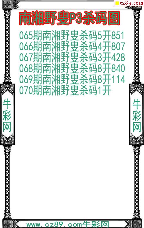 26年070期南湘野叟P3杀码图